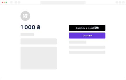 Кнопка оплати для вашого сайту. Покупець обирає monopay на сторінці оплати, підтверджує платіж у monobank — а ви одразу отримуєте статус операції