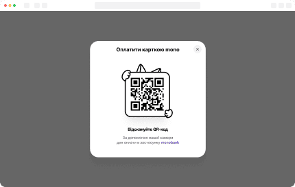 Після натискання кнопки віджет на основі переданих даних створює платіжний запит, а на екрані зʼявляється QR-код. Покупець сканує його телефоном і підтверджує оплату в monobank