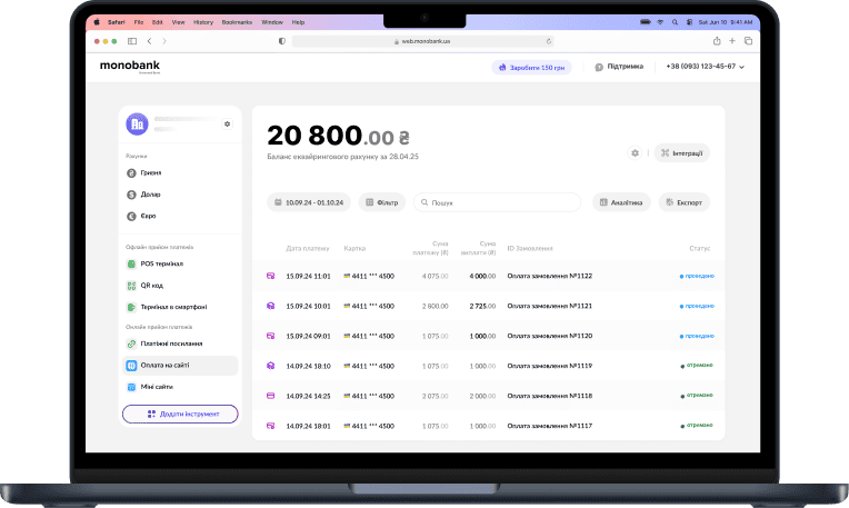 Платежі, рахунки, аналітика — усе під контролем, щоб ви могли зростати