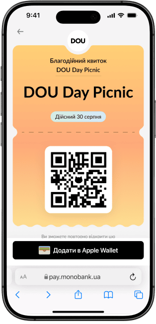 Співпрацювали з mono над нашою найбільшою нетворк-подією DOU Day Picnic. Це було класно! Створили систему за допомогою якої учасники платили за вхід одразу донатом на Повернись Живим, який конвертувався у квиток.