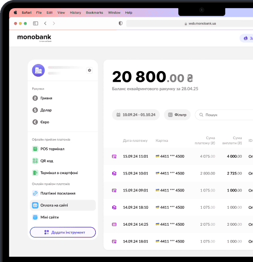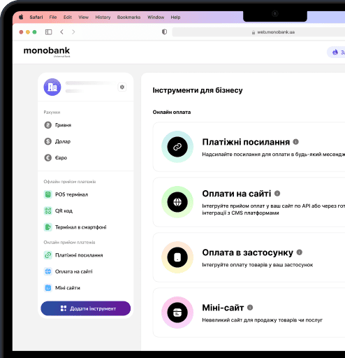Увімкніть сервіси для приймання оплат, які потрібні в бізнес-кабінеті